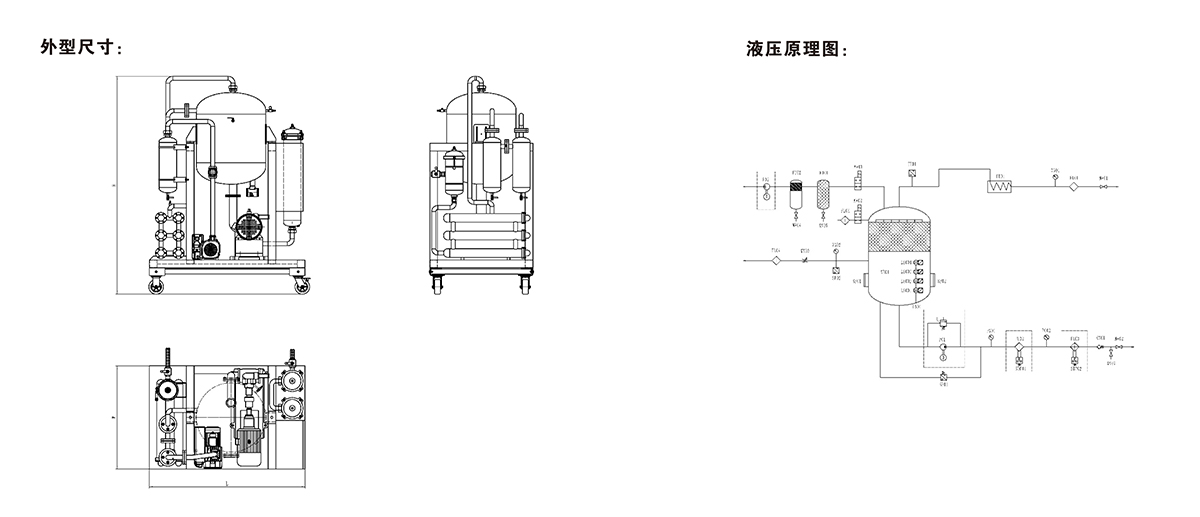 面板上裝有壓力表:在工作時,連續(xù)指示出系統(tǒng)的運行狀況和濾芯的污染程度。